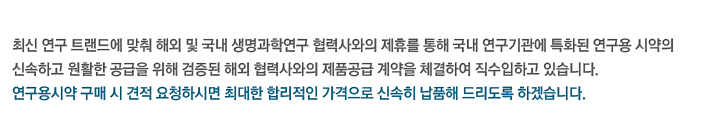 ºÐÀÚ»ý¹°ÇÐ, ¸é¿ªÇÐ, ¼¼Æ÷À¯ÀüÇÐ, À¯ÀüüÇÐ ¹× ´Ü¹éüÇÐ ¿¬±¸, ½Äǰ ¾ÈÀü ¿¬±¸¸¦ Æ÷ÇÔÇÏ´Â ¸ðµç »ý¸í°úÇÐ ¿¬±¸ °ü·Ã ELISA, Antibodies, Peptides, Proteins, Reagents Á¦Ç° »ý»ê/ÆÇ¸Å |